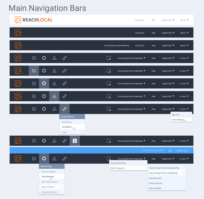 Ground up redesign of ReachEdge – a marketing automation, analytics, and lead management software currently used by over 3,000 local businesses. Key objectives of the project included making the product easier to understand and start using, refactoring the navigation to surface previously buried core functionality, establishing a scalable navigation and UI design framework that could accommodate future features and enhancements, and ensuring consistency across desktop and mobile experiences.